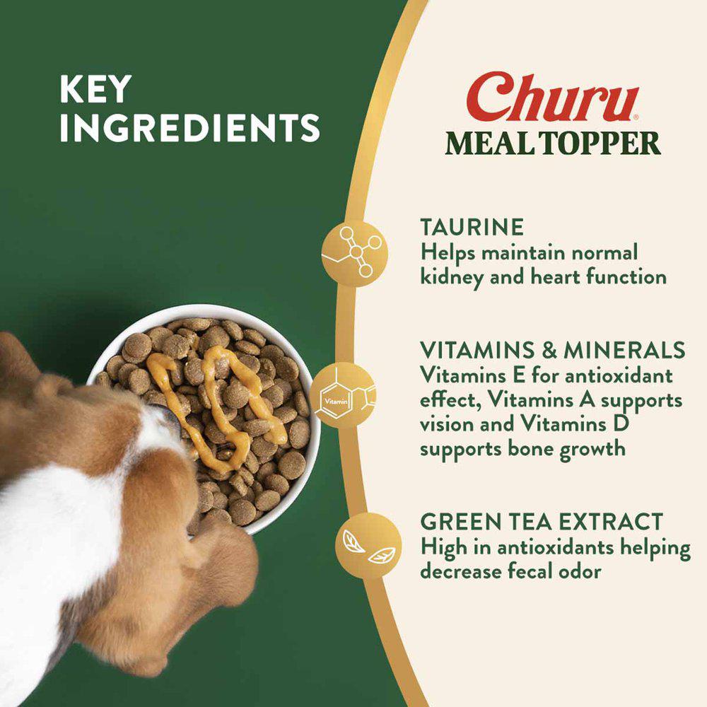 - Din fyrbenta vän är viktig för oss, därför har vi gjort våra Churu måltidstoppningar fria från spannmål, konserveringsmedel, karragenan och konstgjorda färger. Så du kan med gott samvete toppa fodret med dessa – rått, färskt eller traditionellt torrfoder.