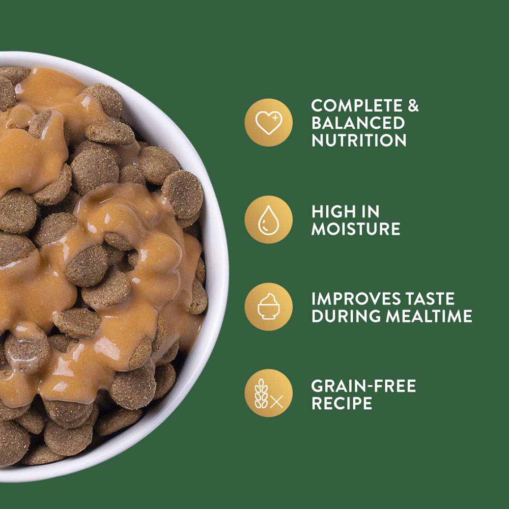 - Denna välsmakande, krämiga puré är perfekt att använda som träningsgodis, att breda ut på favoritslickmattan eller i sin favorit favoritleksak, eller som en topper för torrfoder.