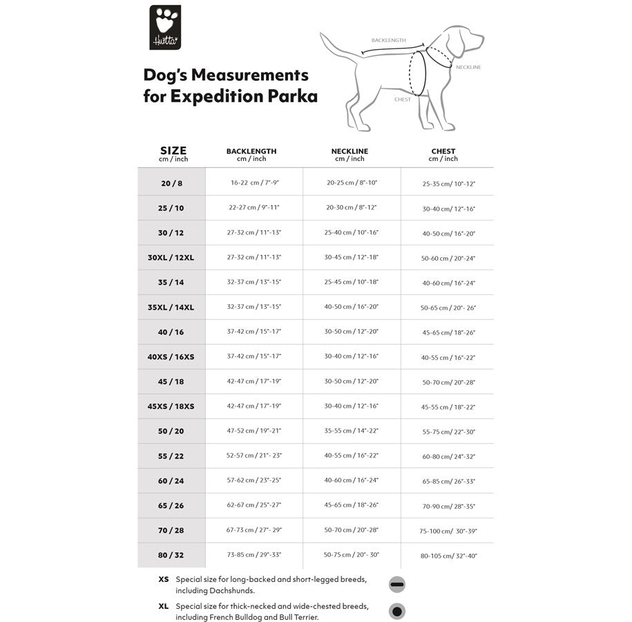 Expedition Parka har utvecklats särskilt för korthåriga hundar och hundar utan underpäls, men i kalla förhållanden passar den även för alla andra hundar. Den är lämplig för extra värme, till exempel för agilityhundar efter träning eller för hundar som behöver värme på grund av sin ålder eller hälsa.