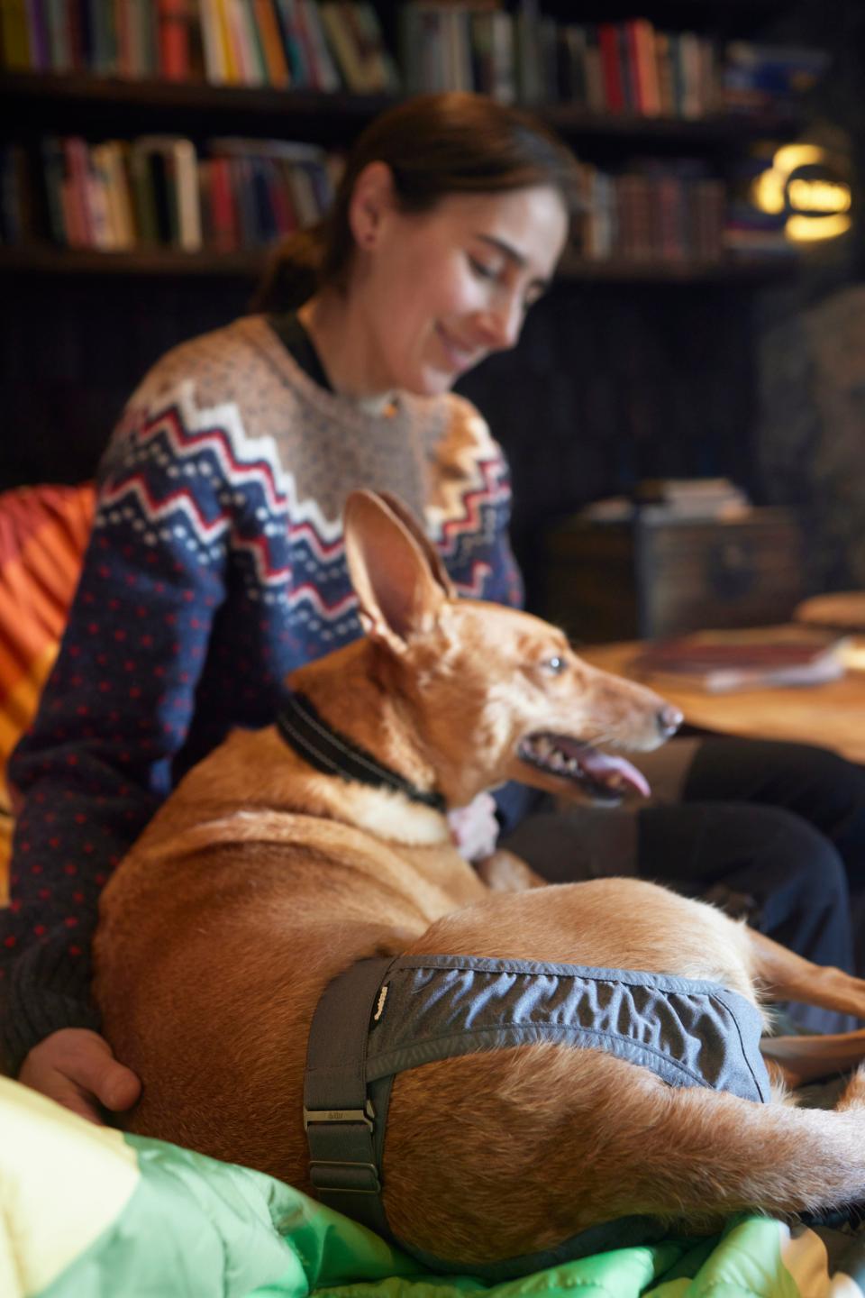 Designförbättringarna i den nya ECO-versionen kan både ses och kännas. Det lätta tyget löper längs hundens sida eller revben och ger en bättre passform till svansen tack vare den utskurna wraparound-stylingen. Det justerbara elastiska midjebandet är tillverkat i ett mjukt och smidigt material som ger en bekväm passform som håller sig på plats även när hunden springer snabbt. Det smarta krokstängningssystemet har en lätt och slitstark metallkrok som stängs snabbt och enkelt och sitter säkert utan att dra i hundens päls.
