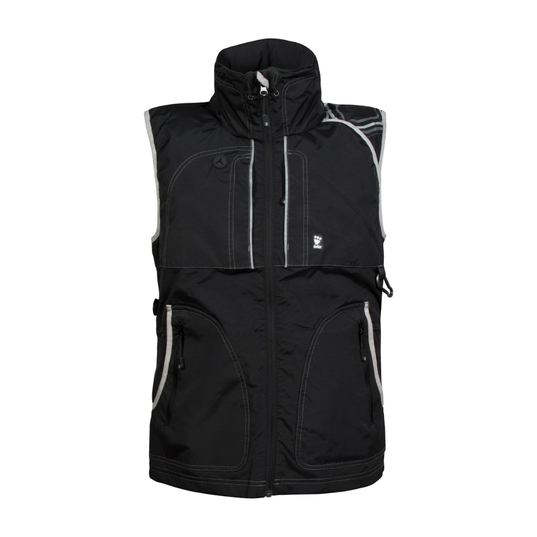 En träningsväst för de olika behoven hos aktiva hundentusiaster. Västen är tillverkad av Houndtex-laminerat, vattenavvisande och slitstarkt sporttyg och har en tättslutande midja och hög krage, som båda är justerbara. En tunn, vattentät huva är dold innanför kragen. Framsidan av västen har fyra fickor med dragkedja samt en avtagbar, tvättbar ficka för klibbiga godis.