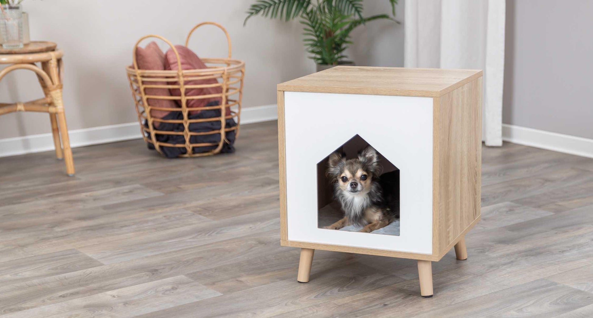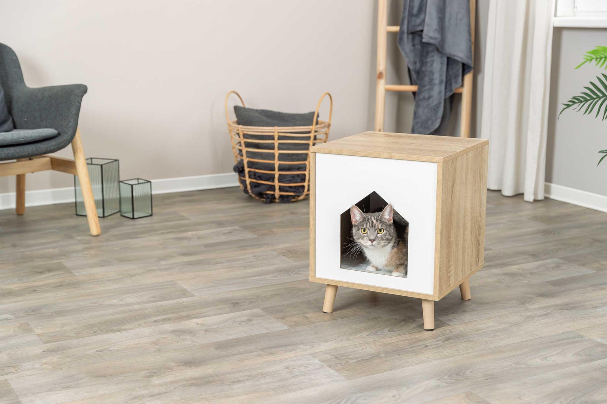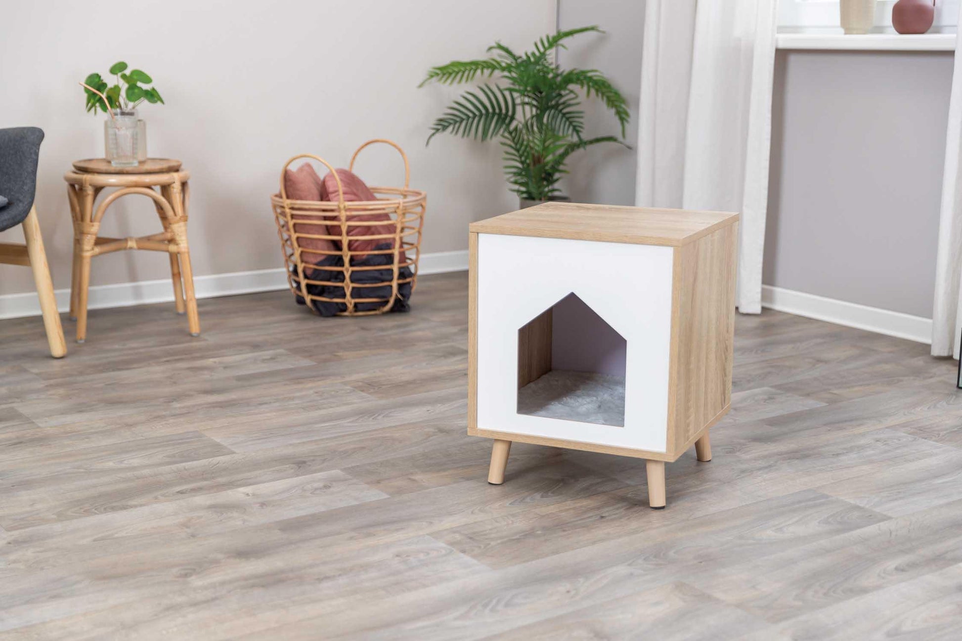 Trixie Koja Isa på ben, trä-look, 40 × 50 × 40 cm, ljusbrun/vit