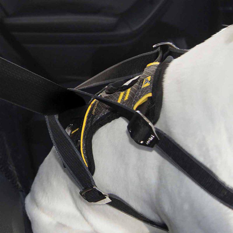 | Användningsinstruktion | Placera din hund i baksätet och låt dem sitta. Dra ner säkerhetsbältet och dra det genom båda banden. Anslut säkerhetsbältet som vanligt för att säkra. |