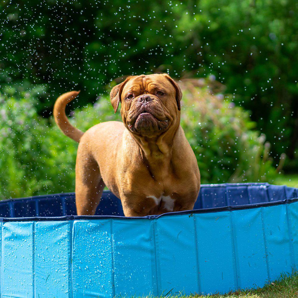 Med den praktiska ventilen töms vattnet ut snabbt och enkelt efter användning. Enkel att montera, ingen pump behövs. Poolens form är anpassningsbar och den kan därför användas i trädgården så väl som på stranden, på balkongen och på altanen. Den kan behållas i den klassiska runda formen eller göras fyrkantig. Den förstärkta botten har anti-glidskydd och är reptålig.Användning: Placera poolen på önskad plats och vrid försiktigt på ventilen. Häll vattnet direkt i poolen. Efter användning, töm ur vattnet genom att vrida på ventilen. Låt poolen torka, vik ihop den och lägg tillbaka den i förpackningen. Varning För att garantera ditt djurs säkerhet ska det övervakas hela tiden när det leker. Låt inte ditt djur använda poolen om några delar har lossnat. Håll utom räckhåll för barn. Använd endast som pool tilldjur. Kontrollera produkten innan lek, om poolen blir skadad, ersätt den med en ny. Om djuret svalt någon del från poolen, kontakta omedelbart veterinär. Se till att djurets klor inte är för långa och vassa för då kan poolen skadas. För poolens hållbarhet, låt inte ditt djur bita i den.