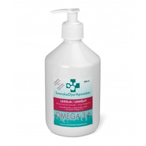 Svenska DjurApotekets Laxolja med sitt nyttiga innehåll av Omega-3,-6 bidrar till djurets hjärt-och kärlhälsa samt ledernas funktion. Omega-3 är en nödvändig fettsyra för cellernas funktion och har en positiv inverkan på kon-centrationsförmågan och nervsystemet.