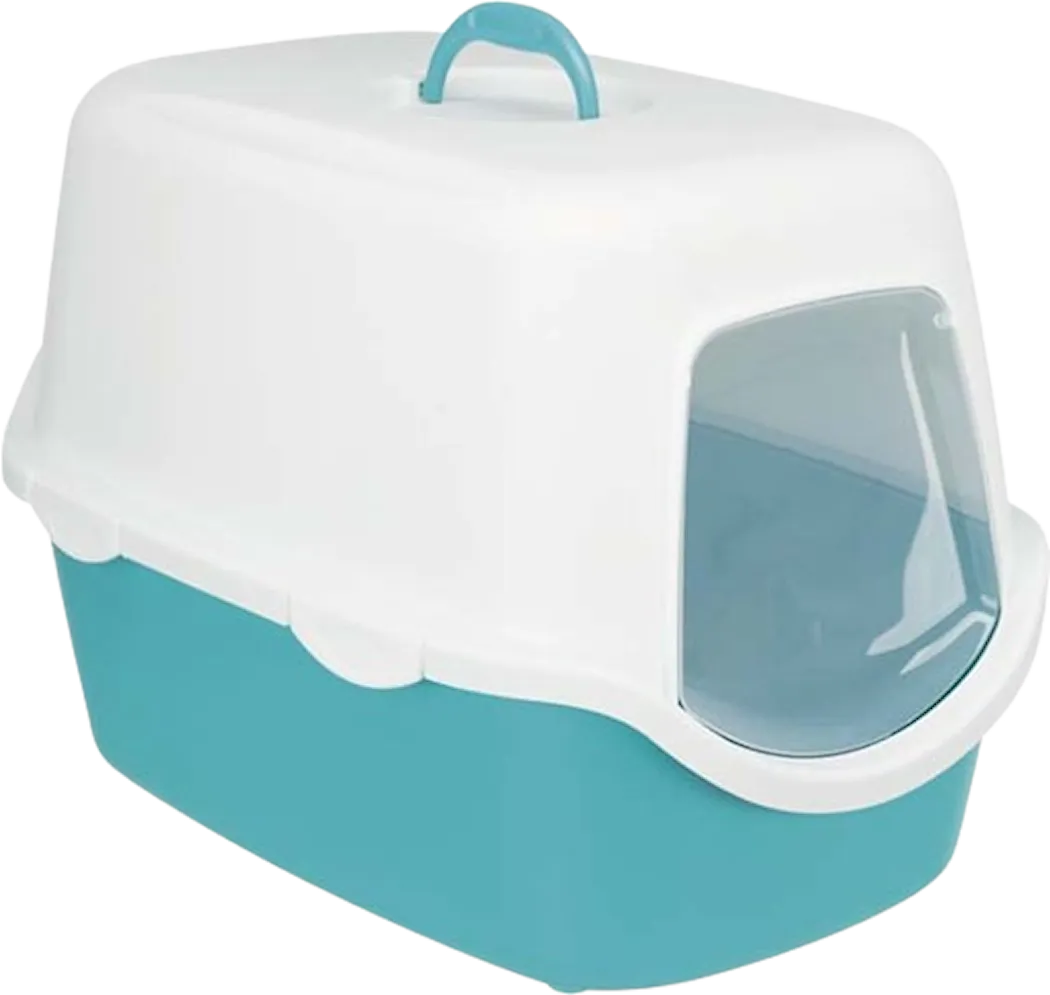 Huven och den höga kanten förhindrar att kattströ hamnar utanför lådan.